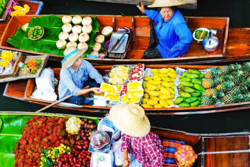 Sau đó, đoàn tiếp tục di chuyển đến Chợ nổi 4 miền, một nơi tái hiện sống động văn hóa sông nước truyền thống của Thái Lan. Tại đây, Quý khách có thể thỏa sức thưởng thức những món ăn đường phố đặc sắc và tự do mua sắm những món quà lưu niệm độc đáo. Đoàn sẽ dùng bữa (trưa) tại nhà hàng.