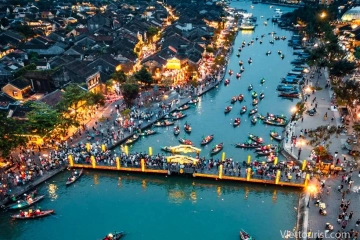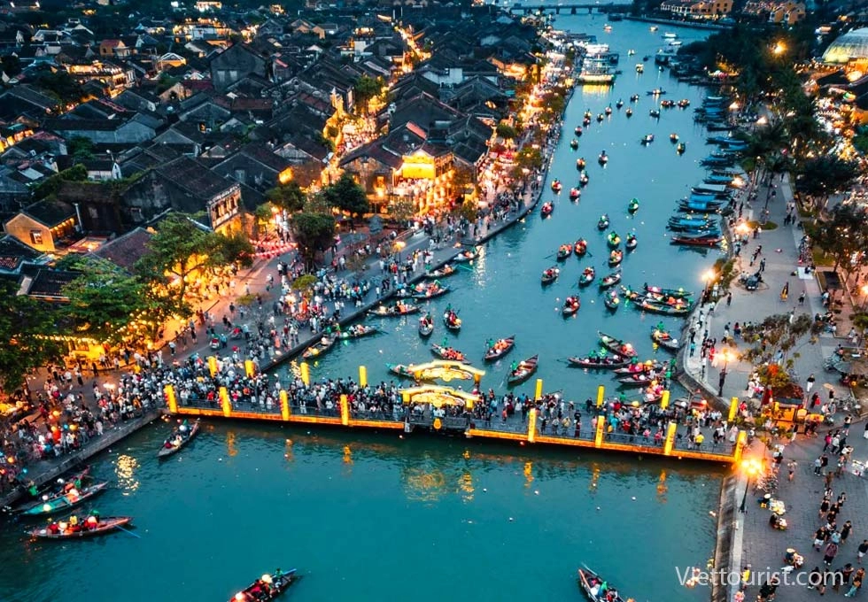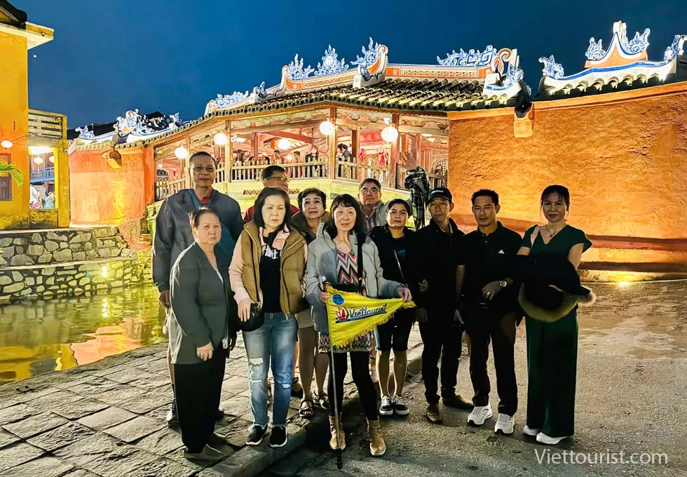 Buổi xế chiều - Xe đưa đoàn đến PHỐ CỔ HỘI AN - di sản văn hóa thế giới được Unesco công nhận đoàn tham quan NHÀ CỔ PHÙNG HƯNG, CHÙA CẦU, HỘI QUÁN PHÚC KIẾN, HỘI QUÁN QUẢNG ĐÔNG. Đoàn tự do trải nghiệm các hoạt động trong phố cổ như thả đèn hoa đăng mừng Tết Nguyên Đán, và tự túc thưởng thức đặc sản Hội An (như bánh mì, cơm gà, cao lầu, thịt xiên nướng, chí mè phủ, tào phớ, ...) theo sở thích thay cho bữa tối.